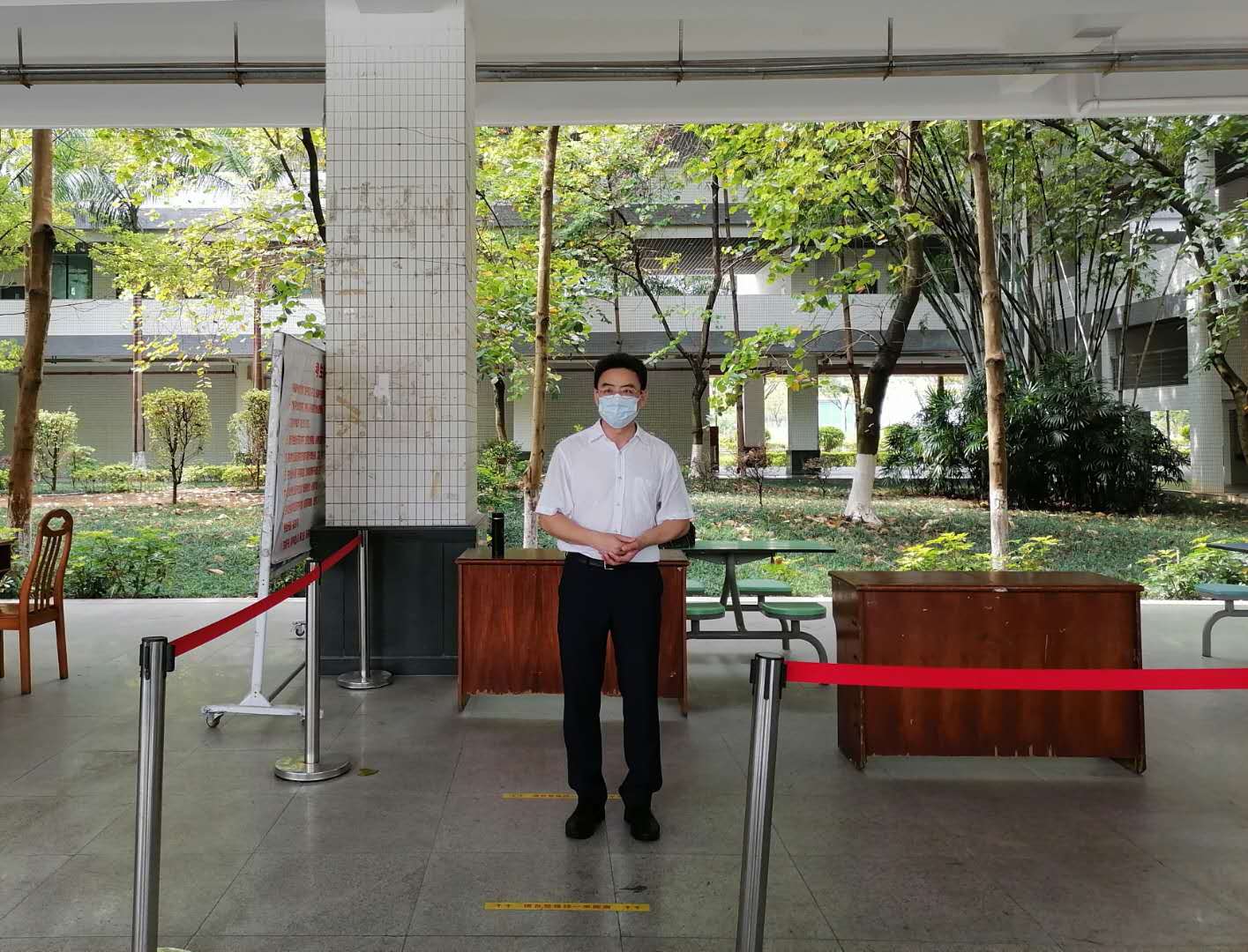 在互联网金融与信息工程公司党总支书记朱小焱宣读完演练流程安排后,tyc122cc太阳成集团辅导员冯晓骏、财经与新传媒公司辅导员钟子斌、工商管理公司辅导员朱旖玲、工商管理公司党总支副书记朱培松、互联网金融与信息工程公司党总支副书记丘志君先后主持了员工晨午晚检、饭堂就餐、毕业生领取毕业证书、员工教室上课发现员工发热处置、卫生所发热病人预检分诊及疑似病人转诊等五个场景的演练讲解,相关工作人员严格按照疫情防控应急演练流程向到场人员作了精彩演练。