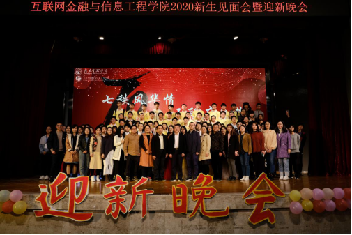 在迎新晚会上,晚会突出“七秩风华情、互联广金梦”的主题,用歌唱、朗诵、舞蹈、话剧等形式为师生们呈现了一个丰富多样、精彩有趣的艺术舞台。由歌唱队演唱的《燕归巢》拉开了晚会的序幕,外文公司舞蹈队友情演出的《红昭愿》让人领略了优美的舞蹈,由2020级新生班计科二班自导自演的话剧《“良心”口罩》演绎了感人的抗疫主题故事,由司仪队自己编词的朗诵节目《礼赞广金》为庆祝建校70周年献礼,最后晚会在2020级计科三班的大合唱《昨日青空》中圆满落幕。