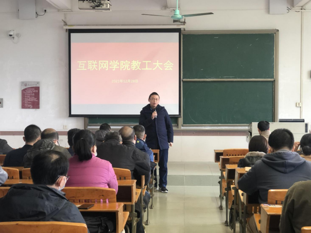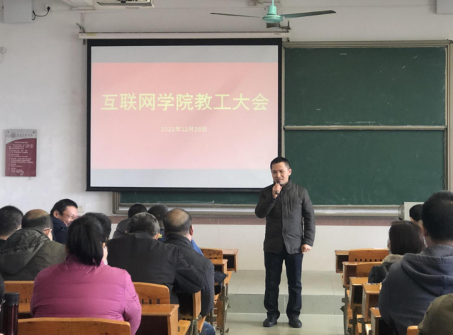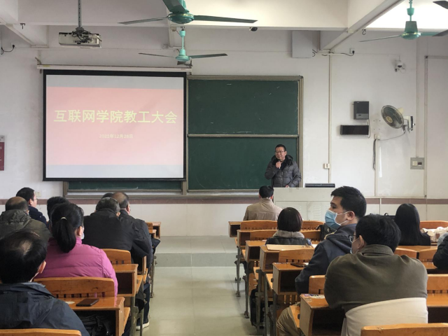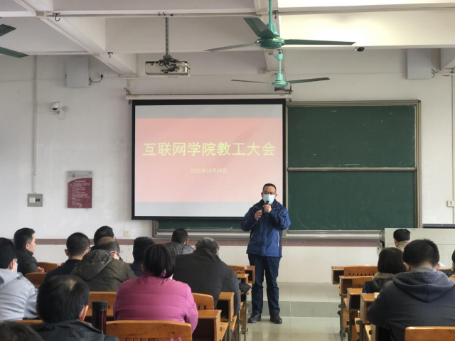 2021年12月28日,tyc122cc太阳成集团在7栋102课室召开全体教工大会,全院教工参加了会议,会议由院长吴炎太教授主持。
