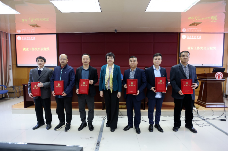 钟培权老师(左三)荣获2023年就业工作先进个人