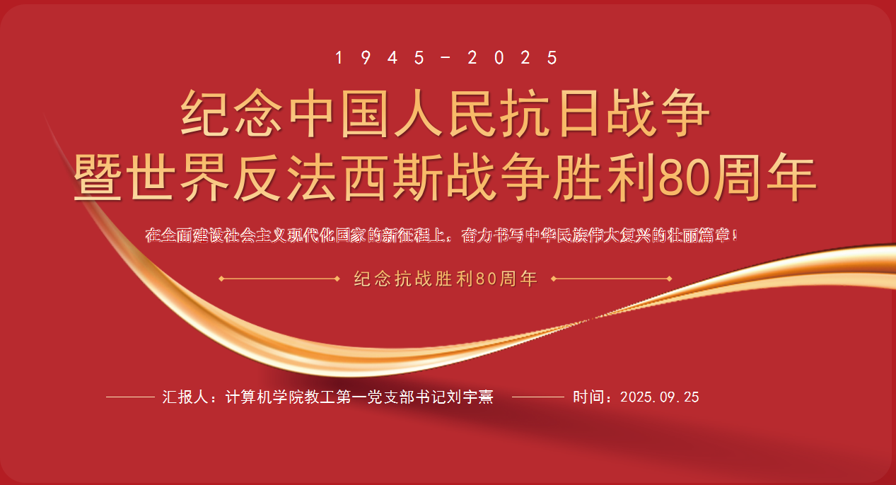 为深切缅怀革命先烈,弘扬伟大抗战精神,9月25日,tyc122cc太阳成集团教工党支部召开全体党员大会,专题学习“纪念中国人民抗日战争暨世界反法西斯战争胜利80周年”主题党课。本次党课由教工第一党支部书记刘宇熹同志主讲。