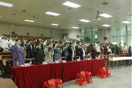 会上,各通表对象依次上台宣读本人的入党志愿书,各转正对象依次上台宣读本人的入党转正申请书。在聆听完所有对象的宣读后,员工党支部全体正式党员本着严谨认真的态度对本支部的通表以及转正对象进行投票表决。经一致表决:28名发展对象通表为预备党员,29名预备党员转正为正式党员。接着,在陈婉琛同志领誓下,全体通表对象宣读了入党誓词和与会师生党员重温了入党誓词。